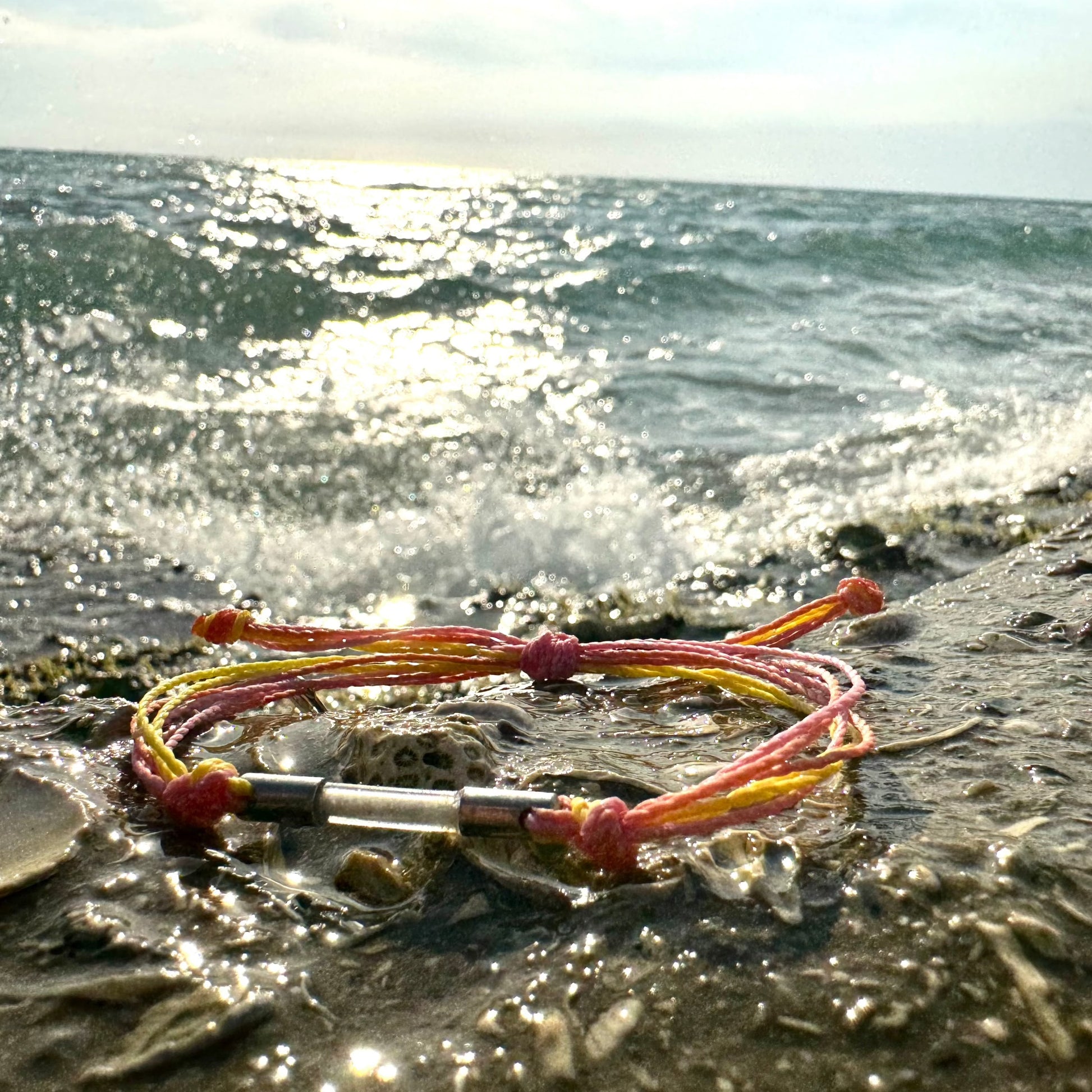 Introducing the "Pink Lemonade" bracelet, Like sunshine on your wrist. This bracelet features soft pink and lemony yellow hues, reminiscent of the refreshing drink on a warm summer day. Wear the "Pink Lemonade" bracelet to add a touch of summer bliss to your style.